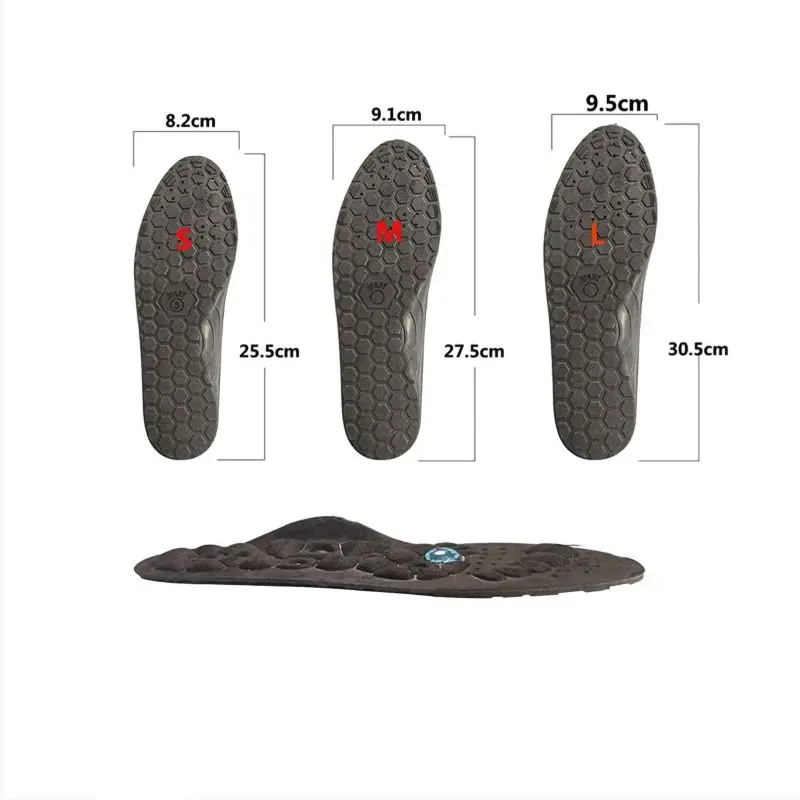 • Masaj cu Magneți: Branțurile includ magneți plasați strategic, care stimulează ușor tălpile, oferind o senzație de relaxare și îmbunătățind circulația sângelui.