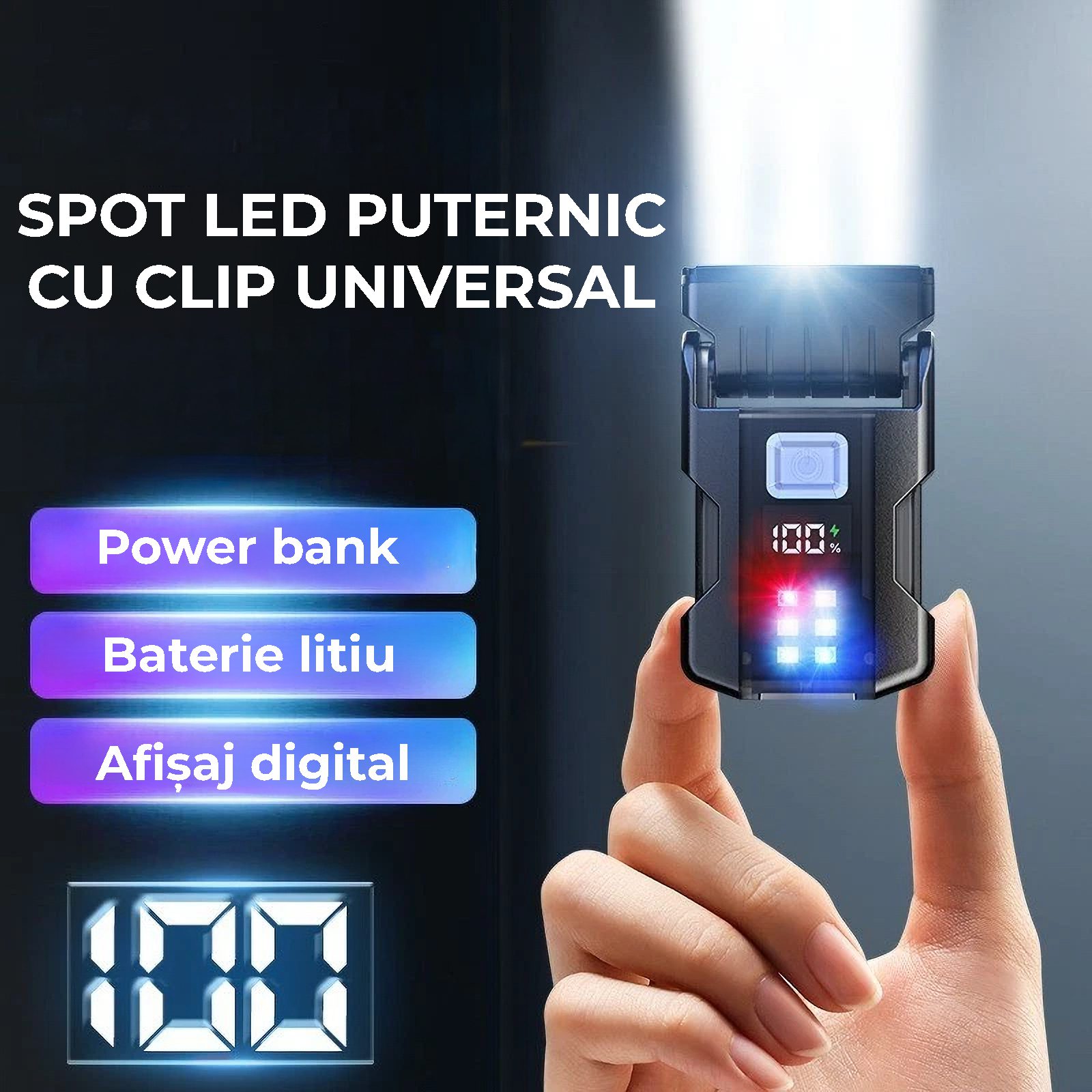• Magnet integrat si clip spate – fixare rapida pe suprafete metalice, sapca, buzunar sau curea pentru lucru hands-free.