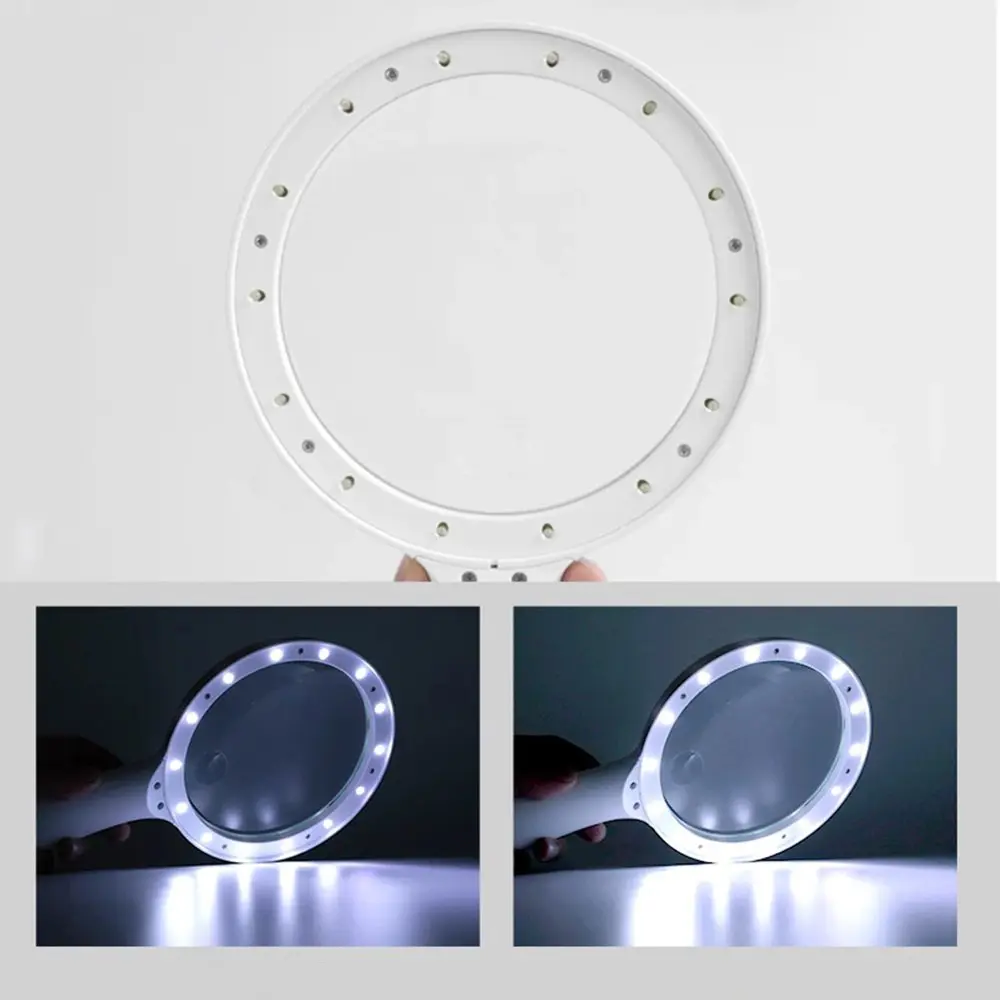 Echipată cu 20 de LED-uri, lupa oferă o lumină albă puternică, uniform distribuită, reducând oboseala ochilor. Aceasta este ideală pentru utilizarea în condiții de iluminare slabă, permițând vizualizarea clară a detaliilor fine.
