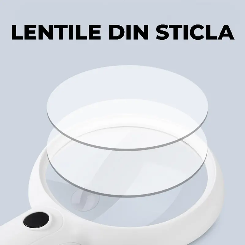 Spre deosebire de modelele din plastic, această lupă optică dispune de o lentilă din sticlă, oferind o imagine clară, fără distorsiuni. Materialul de calitate asigură durabilitate și confort vizual îmbunătățit.