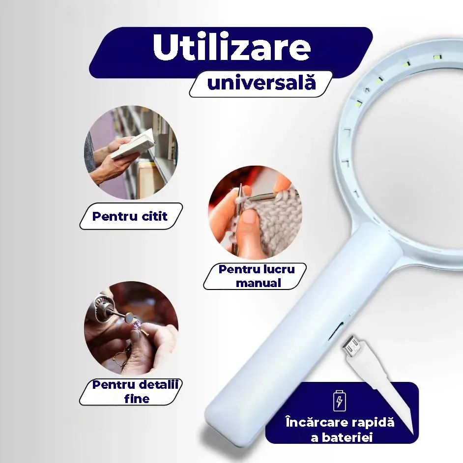 Această lupă de mână cu iluminare LED și mărire 30X este alegerea perfectă pentru oricine are nevoie de o vizibilitate îmbunătățită, fie că este folosită pentru citit, reparații, hobby-uri sau examinarea detaliilor fine.