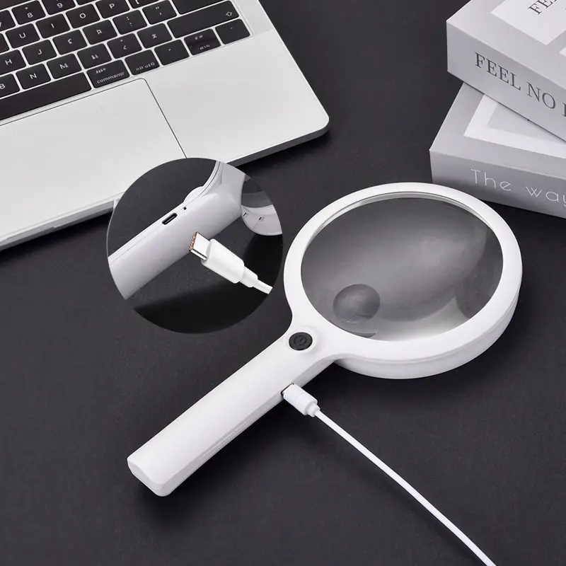 Datorită bateriei reîncărcabile și a portului USB-C, lupa poate fi încărcată rapid de la laptop, baterii externe sau încărcătoare de priză. Fără necesitatea bateriilor clasice, aceasta devine o alegere economică și ecologică.