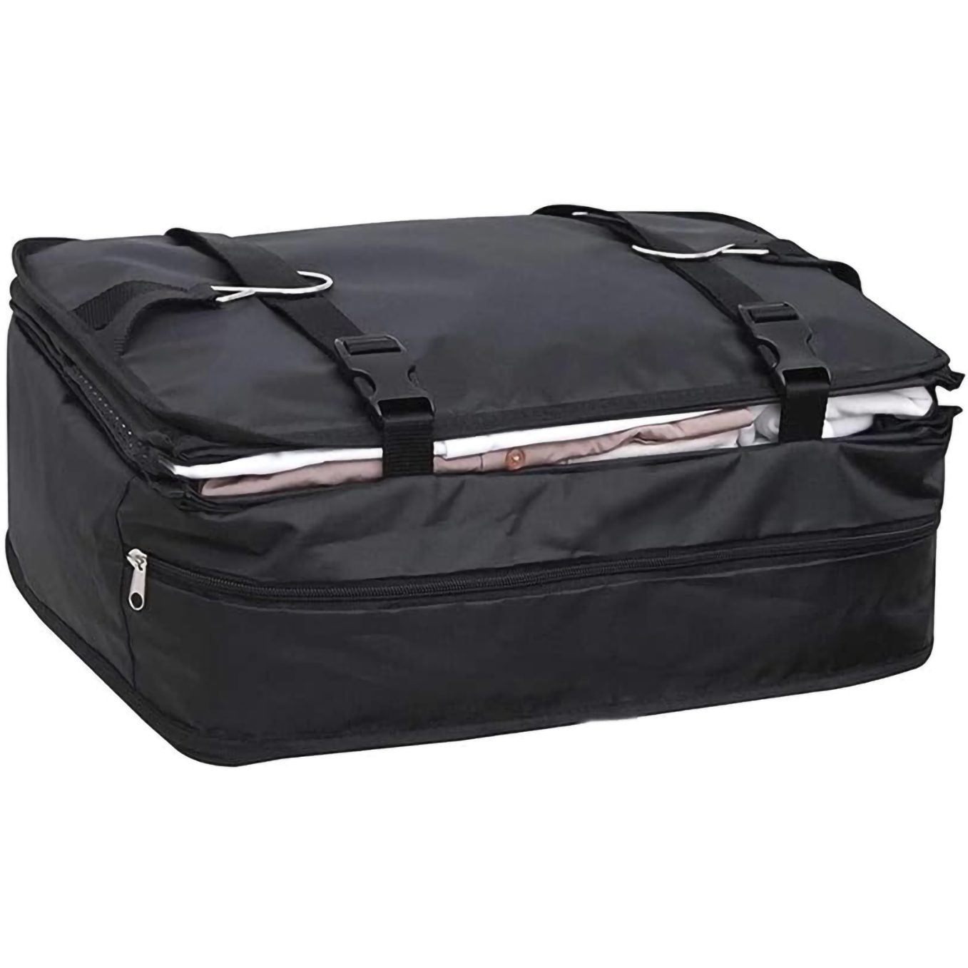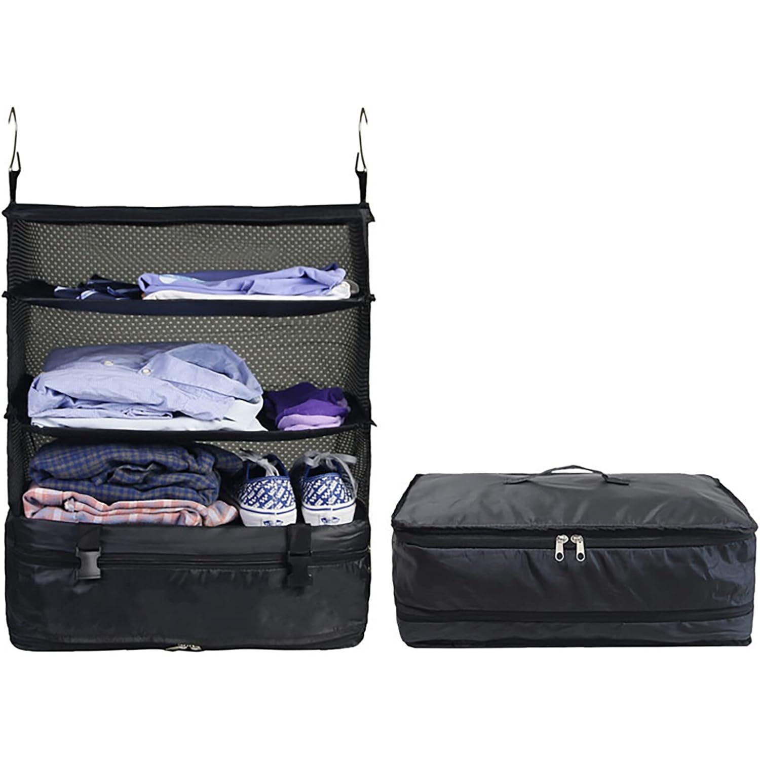 Design Eficient cu 3 Nivele Organizatorul dispune de trei nivele generoase, ideale pentru a separa si a aranja articolele de imbracaminte. Acesta este perfect pentru a pastra hainele calcate si fara cute, chiar si in timpul calatoriilor lungi. Nivelurile sunt suficient de spatioase pentru a acomoda camasi, pantaloni, si alte obiecte vestimentare.