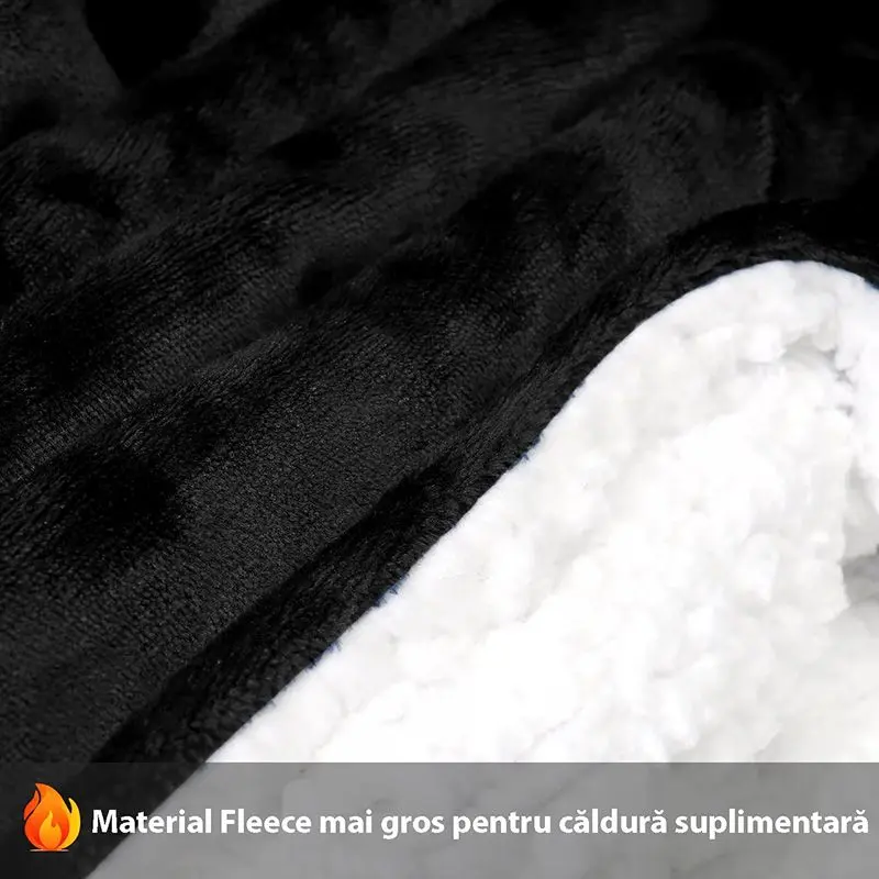 Patura cu Maneci si Gluga, Tip Hanorac, Fleece Calduros, Plusat, Marime Universala