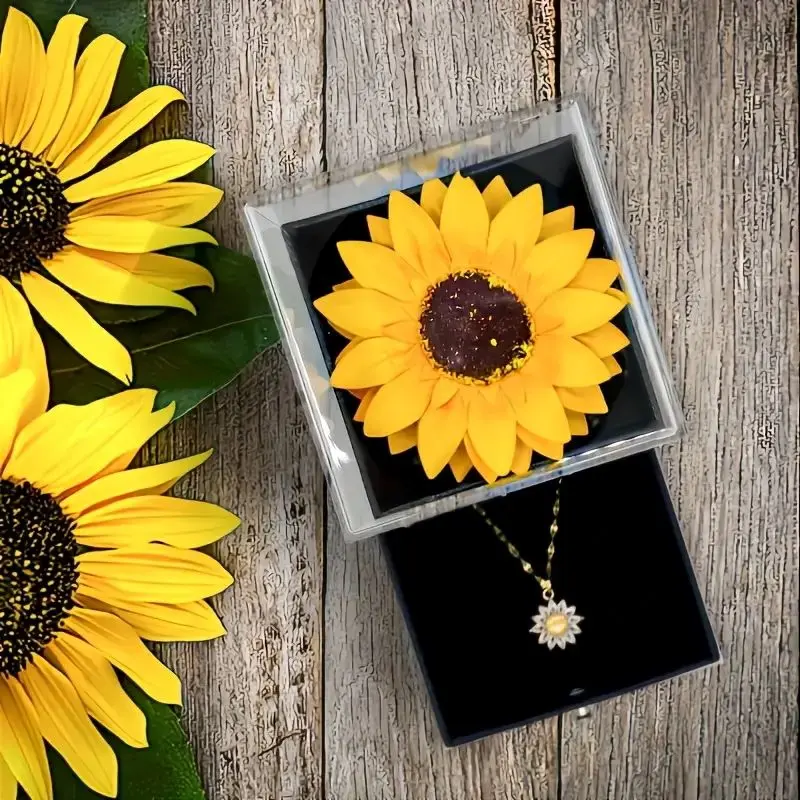 Ideal pentru Ziua Indragostitilor, aniversari, Ziua Mamei sau alte momente speciale, acest set cadou floarea soarelui imbina eleganta cu emotia. Cutia parfumata si colierul delicat sunt perfecte pentru a transmite un mesaj de iubire si recunostinta.